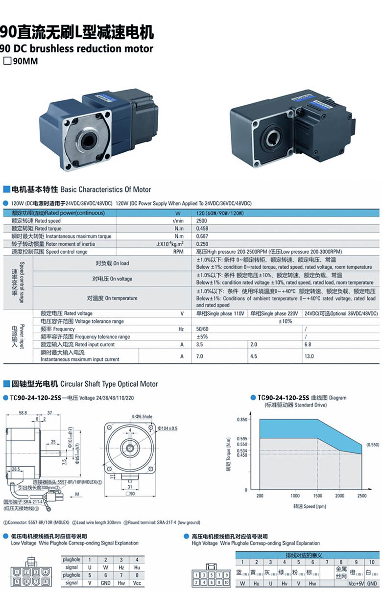 產(chǎn)品名稱:L型直流無刷減速電機(jī)90W-120W